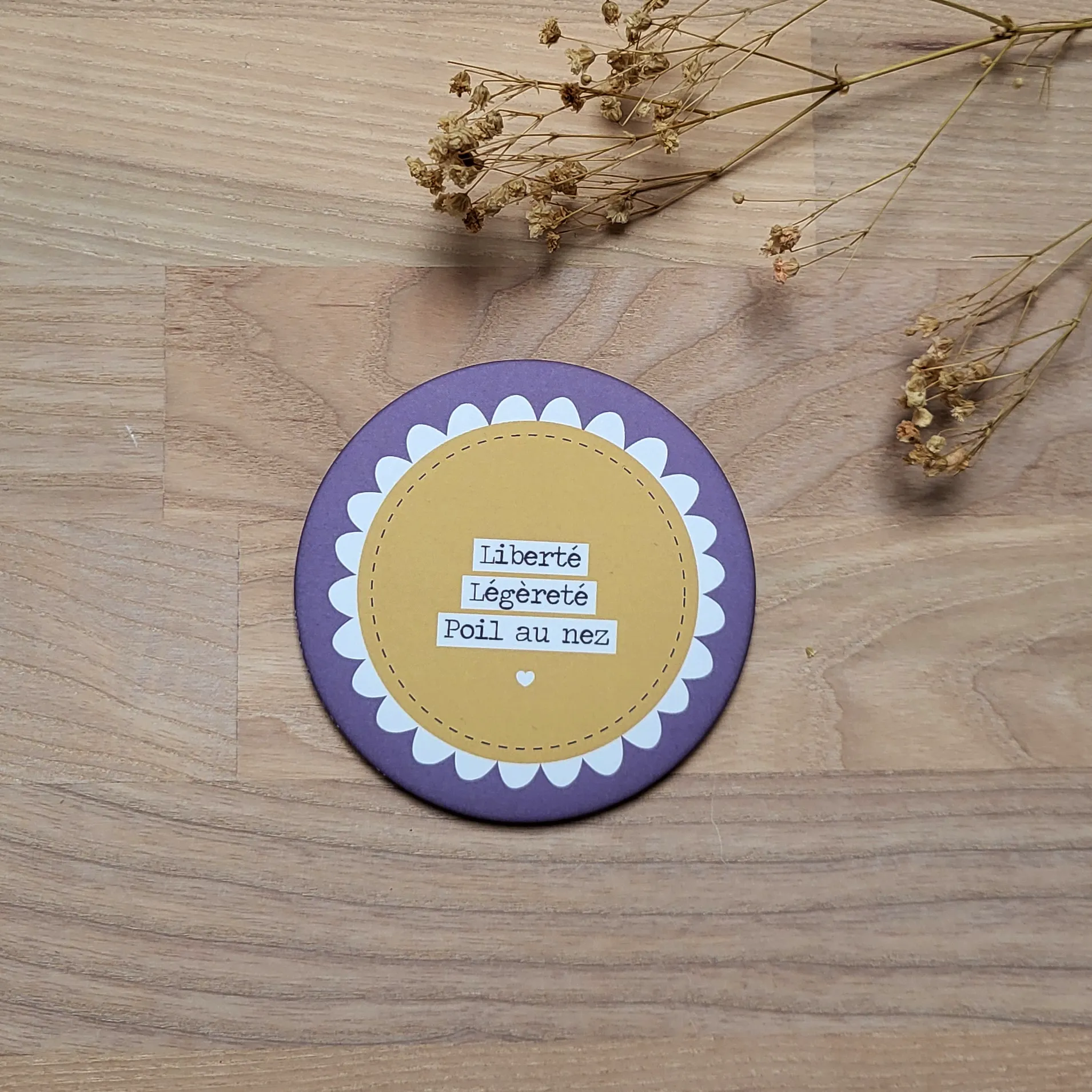 Miroir de poche “Liberté, légèreté, poil au nez”